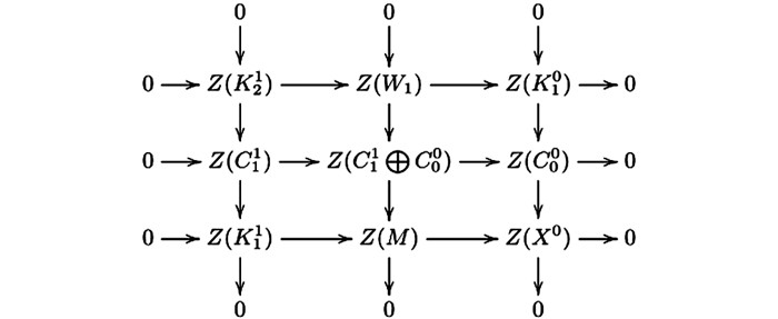 $ 0 \longrightarrow {C_0}/Z\left( {{C_0}} \right) \longrightarrow {C_1}/Z\left( {{C_1}} \right) \longrightarrow {C_2}/Z\left( {{C_2}} \right) \longrightarrow 0 $ ;(ⅴ)