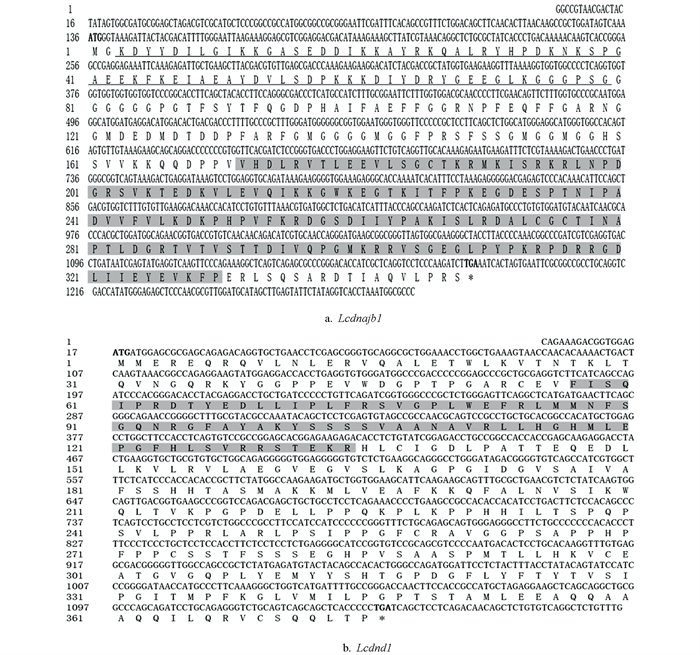 • 图 1  Lcdnajb1Lcdnd1核苷酸和编码的氨基酸序列