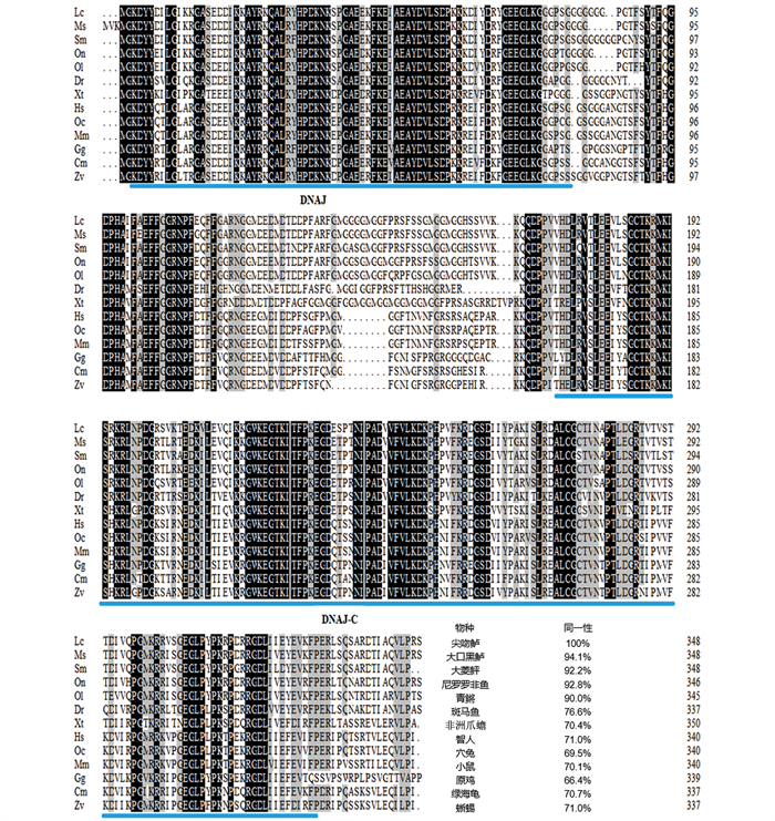 图 2  尖吻鲈与其他物种的Dnajb1氨基酸序列的多重比对分析