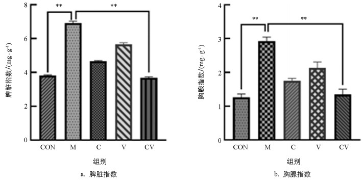 • 图 1  黄连蜂房对慢性湿疹小鼠脾脏和胸腺的影响(n=10)