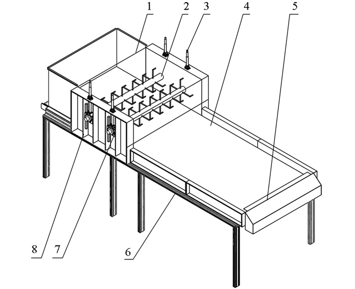 上述研究工作主要存在以下问题:①部分养蚕装备在总体设计上存在不足,无法实现大规模大批量的养蚕需求;②某些装备智能化水平低下,难以实现自动、精确的桑叶饲喂;③缺乏合理的结构设计,无法保证桑叶的均匀撒喂。针对这些问题,本研究的桑叶养蚕装备采用输送带式作业方式,提高饲喂的稳定性和效率;通过拨桑辊与传送带配合,提高桑叶饲喂的均匀性与精度。在此基础上搭建试验样机,通过3因素3水平响应面试验确定该装备的最佳工作参数。