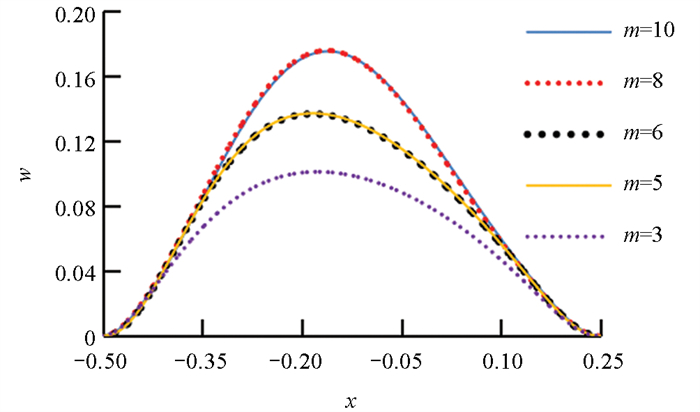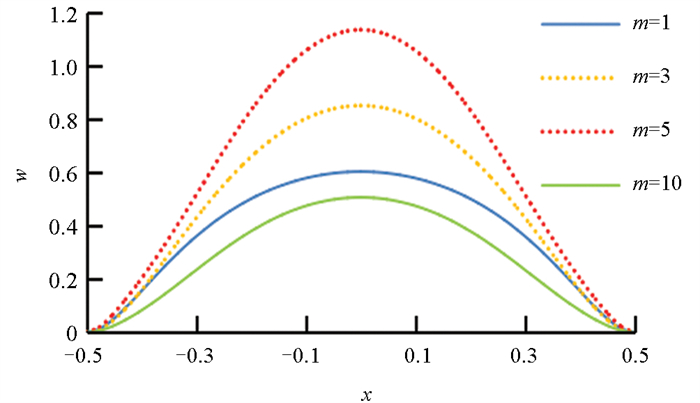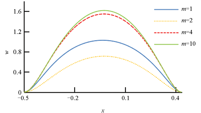 图 3  m取不同值时的挠度曲线变化(薄板)