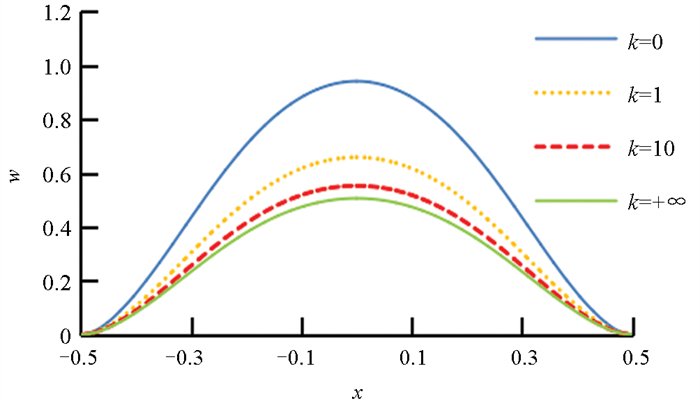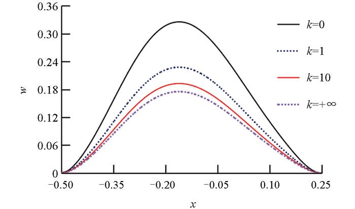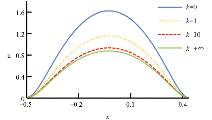 图 4  k取不同值时的挠度曲线对比(薄板)