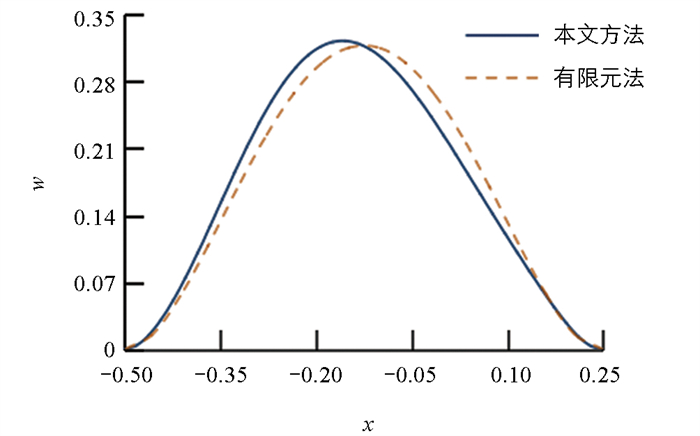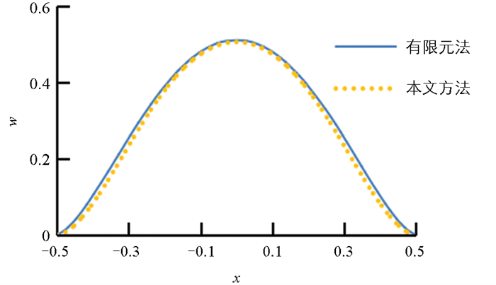 图 2  本文方法与有限元法的挠度曲线对比(薄板)