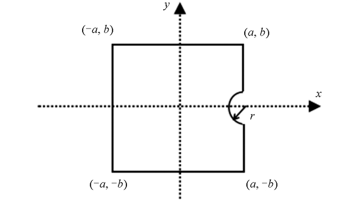 式中:$\omega_{1}=\frac{a^{2}-x^{2}}{2 a} \geqslant 0 ; \omega_{2}=\frac{b^{2}-y^{2}}{2 b} \geqslant 0 ; \omega_{3}=\frac{(x-a)^{2}+y^{2}-r^{2}}{2 r} \geqslant 0$