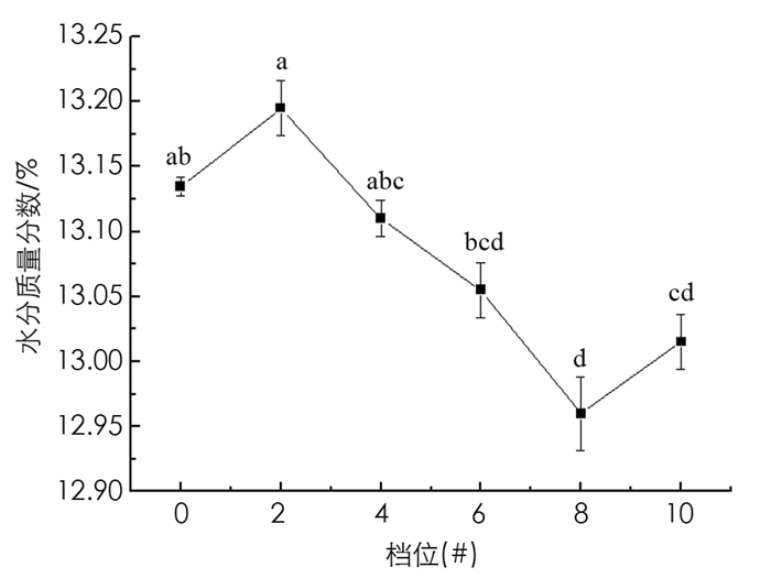 2.1. 不同碾磨程度籼米水分质量分数变化