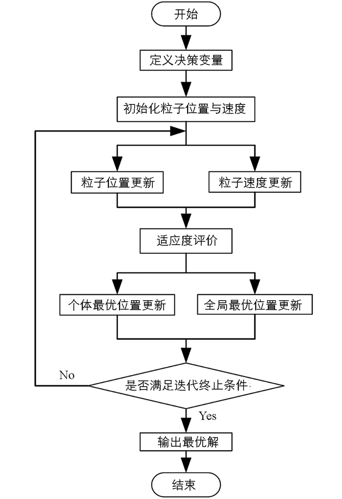 鲜活农产品配送路径规划方法求解流程比较更新后的粒子与其历史最佳位置的适应度值,若发现当前适应度更佳,则立即更新个体的最优位置pb(t),以确保粒子始终朝向更优的解空间移动[24],并在此基础上更新全局最优位置gb(t)。通过不断重复上述步骤,直到算法达到最大迭代条件[25],通过结合粒子群择优算法,将决策变量定义为配送路径方案的可行解,并通过适应度函数评价的方式进行个体更新,最终输出对应的最优规划方案。至此,完成基于粒子群择优算法的鲜活农产品物流配送路径规划方法设计,整体求解流程如图 1所示。