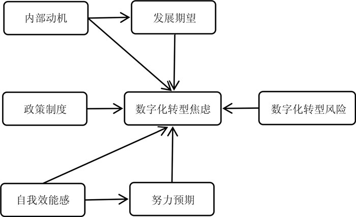 根据以上假设,构建了中小学教师教育数字化转型焦虑影响因素的理论模型,如图 1所示。