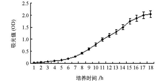 生长曲线表明,目的农杆菌在培养8 h时,OD值达到0.5(图 2),因此后续一般亚培养8 h即可进行侵染实验.