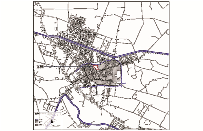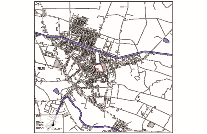 1992年12月至翌年5月,重建光霁堂. 1996年9月,四川省人民政府公布新繁东湖为四川省文物保护单位. 2008年,因汶川地震导致东湖严重受损,翌年,成都方圆建筑及环境艺术研究院,对东湖现阶段水体“活水无源,水质趋于恶化”等问题,提出整治调整;将东湖及周边环境化为三级不同的保护区,对受损古建筑分年分期进行修缮.从新繁现代城市地图(图 6)也可以看出,原来流入东湖的护城河已变为小水渠,对整体东湖水源导入的能力也大大减弱,因而东湖水质变差、水体污染的状况成必然.在2015年8月,新繁镇人民政府针对东湖水质差、水体富营养化、夏季蓝绿藻爆发、冬季水体发绿的情况,委托太和水环境科技有限公司实施了东湖公园湖区水体生态修复和水质净化工程,调整水源补水比例(地下水占80%,外道河水占20%),运用水下生态修复技术,重构水下生态系统,恢复水体本身自净能力,使得水质得到净化,水体清澈.