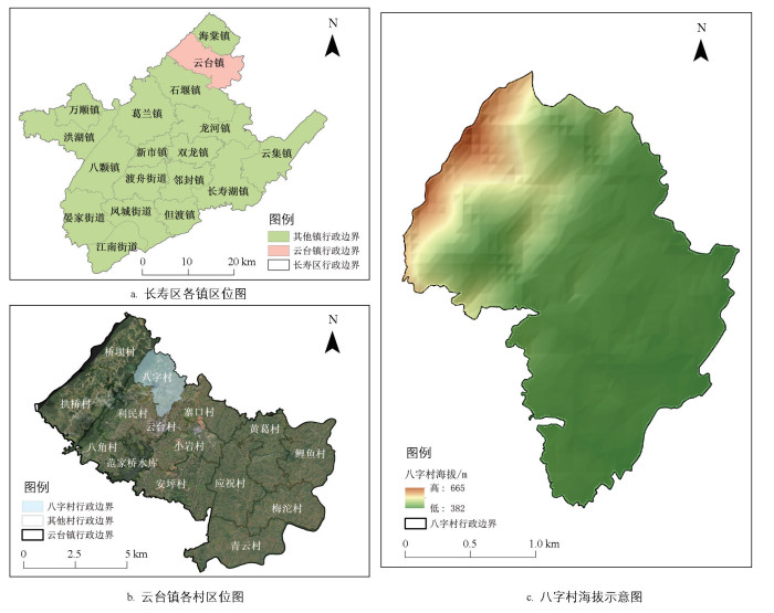 • 长寿区地处重庆市东部,位于龙溪河流域,是重庆百万亩“巴渝粮仓”的核心区域。八字村位于云台镇明月山麓,是长寿现代粮食生产区的核心区之一。八字村由原八字、宁岗与四方3个行政村合并而成,全村户籍人口3 572人,常住人口约1 000人。八字村呈现出典型的丘陵型、农业主导型、人口流出特征,地理位置如图 1所示。长期以来,八字村面临农业经营规模小、机械化程度低、劳动力流出严重等共性问题,具备较强的区域代表性和典型性。自2014年起,八字村在地方政府的政策扶持与清迈农业公司的产业带动下,探索出了“土地流转—产业规模化—企业带动就业—农户增收”的村企合作模式。该模式以清迈农业公司为核心,开展绿色农业、农产品深加工、乡村旅游一体化开发,不仅实现了当地农户人均收入提升,还显著优化了劳动力就业结构,使得农村人居环境和基础设施建设水平显著改善。类似模式也已在河北易县和四川雅安等地区的乡村产业实践中得到验证,不同地区虽存在资源禀赋差异,但企业主导、政府引导、土地规模化经营与利益联结机制创新等关键要素具有一定普适性。这使得本研究所选择的八字村案例不仅反映了当前我国乡村产业振兴实践中的典型特征,也为其他丘陵地区开展类似的村企合作提供了相关的经验借鉴和理论启发。