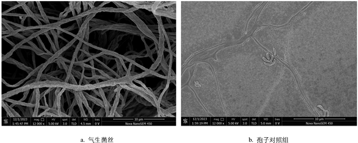 图 5  生防菌株SC-6气生菌丝和孢子的扫描电镜观察结果