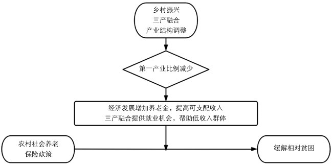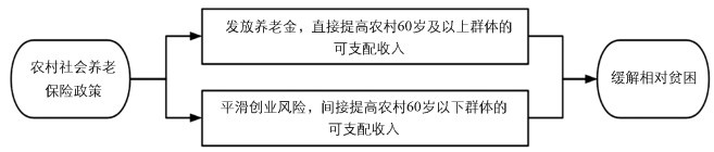 缓解相对贫困是基于中国特色反贫困理论指引脱贫攻坚战取得全面胜利后的接续目标,也是中国特色反贫困理论在新时代背景下指引中国实现共同富裕的阶段目标。依据反贫困理论,以追求剩余价值为目的的初次分配造成了我国城乡差距大、相对贫困状况存在的现状,而农村社会养老保险制度立足中国特色的反贫困理论,通过二次分配为农村地区处于相对贫困的农村老年人发放养老金,直接增加农村老年人的可支配收入,并通过平滑创业风险、减轻家庭负担等机制间接增加农村青年人的可支配收入,进而缓解相对贫困。
