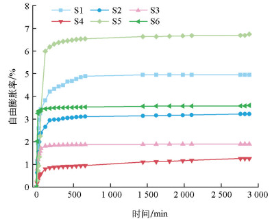 • 图 1  自由膨胀率与时间的关系曲线