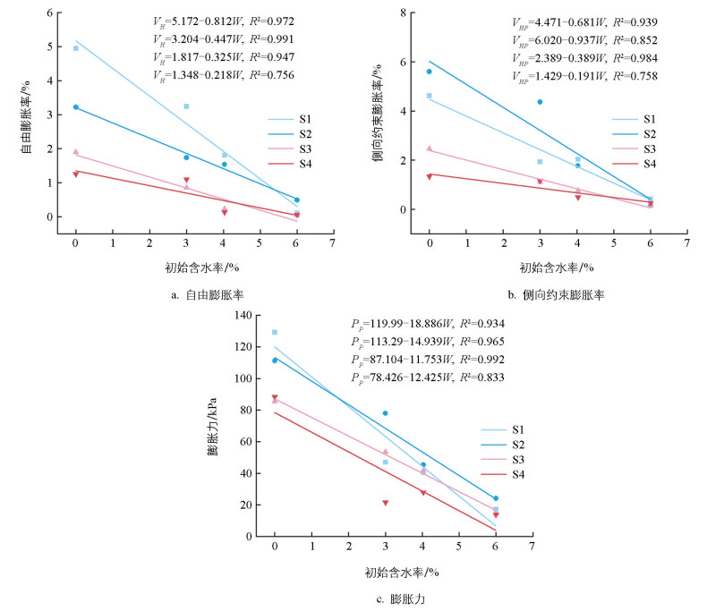 图 11  初始含水率与膨胀性指标的关系图
