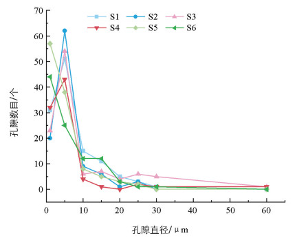 图 6  孔隙直径与孔隙数目的关系分布图