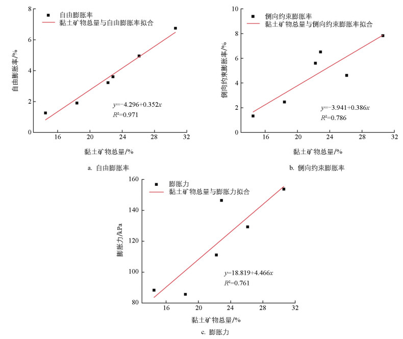 图 7  黏土矿物含量与膨胀性指标的关系图