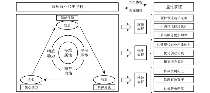 宜居宜业和美乡村是新时代乡村全面振兴的核心目标,是宜居、宜业、和美三位一体、有机统一的乡村发展形态,既涵盖物质层面的生产生活条件改善,也包含精神层面的文明治理提升,最终目标是持续提升农民的获得感、幸福感与安全感(图 1)。