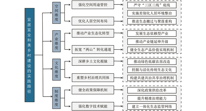 生态脆弱区宜居宜业和美乡村建设可从空间维度、产业维度、文化维度、制度维度4个方面探究其实践路径(图 3)。