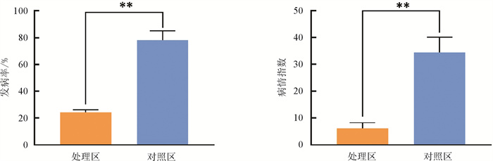 采用Excel 2020对试验数据进行分析,计算病情指数和相对防效,采用SPSS进行方差分析并利用Prism软件作图。