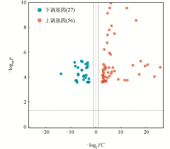 • 为了验证测序结果的可靠性,分别挑选10个差异表达的mRNA和lncRNA(上调、下调各5个)进行RT-PCR验证。使用β-actin基因作为内参基因,所有引物信息见表 1,所有引物均在苏州金唯智生物科技有限公司合成。利用2-ΔΔCt方法计算基因的表达量。