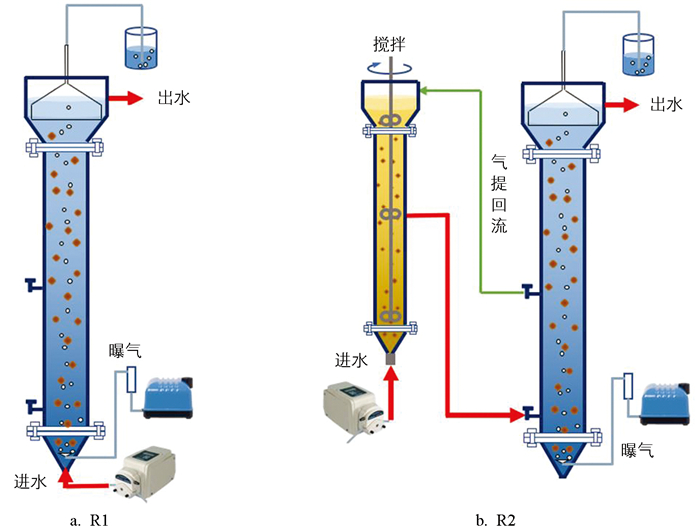 试验在两套圆柱形有机玻璃反应器中开展(图 1),分别为对照组R1和试验组R2。