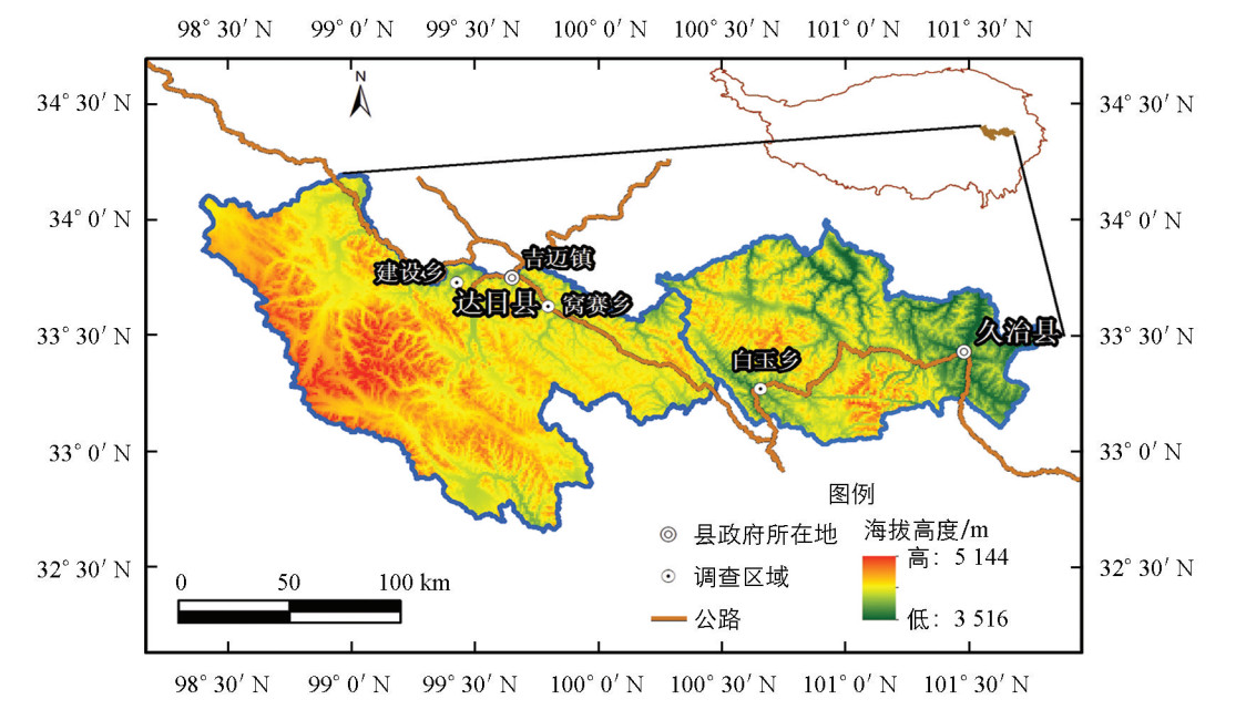 研究区为青海101省道沿线青海省果洛藏族自治州东南部达日县的吉迈乡、建设乡、窝塞乡和久治县的白玉乡(图 1),研究区的选择主要是因为这些地区均出现不同程度的草场退化,寻求环境友好的、可持续的草地管理利用方式已成为地区政府和居民共同面临的问题.