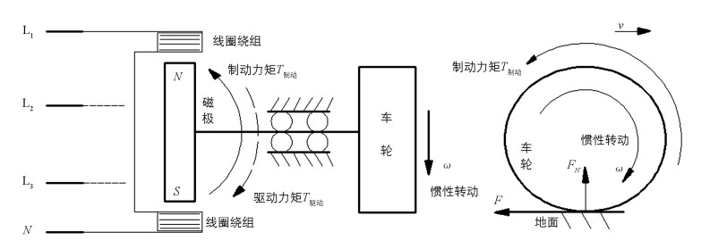 3) 高强度制动(制动减速度a>2 m/s2),以机械制动为主、电磁制动为辅,机械制动提供主要制动力矩.同样需防止车轮抱死现象发生.