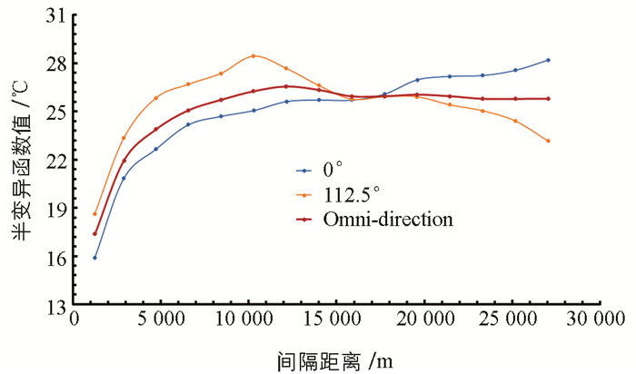 有些学者可能会假设地表温度在空间上的变化是均匀的,然后借助全向半变异函数定量地描述其空间异质性[14].但在实际研究中,随着地理位置的变化,城市热岛的空间变异可能会变得非常复杂,尤其在本文所选的这种特殊山地城市(重庆市)中,很有可能在不同方向或者不同尺度呈现出不同程度的变异.因此,本文在不同方向和不同尺度2个方面,借助全向及各向实验半变异函数全面刻画重庆市热岛的空间异质性,并挖掘其背后的驱动原因.