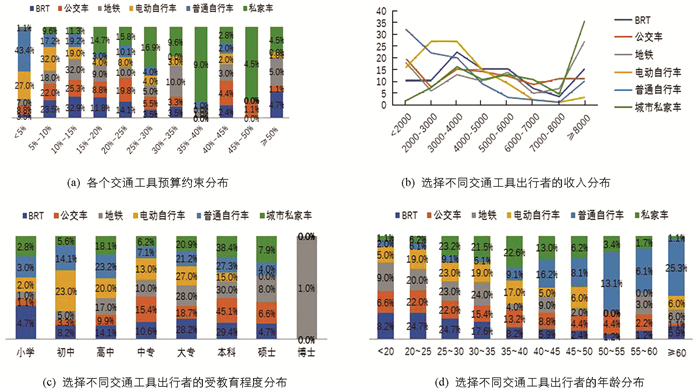 1) 职业阶层越高,文化程度越高,选择效用越高的交通工具;反之,亦然.
