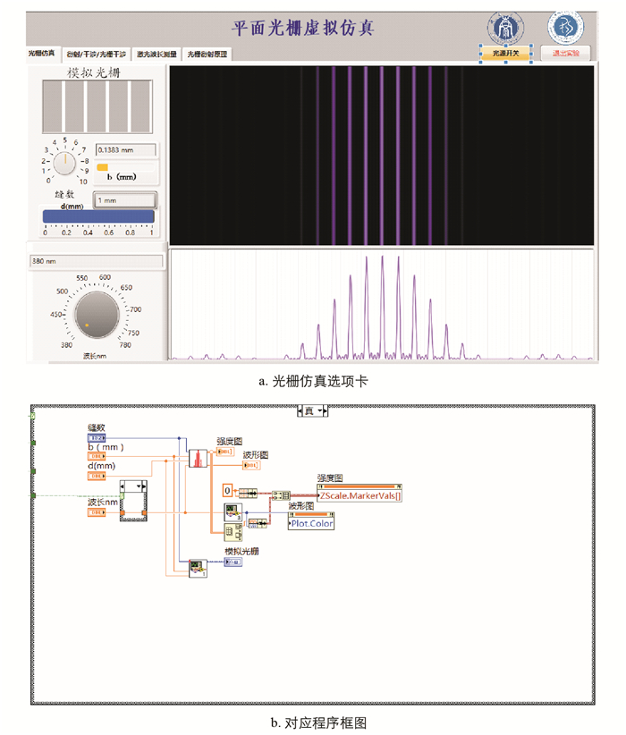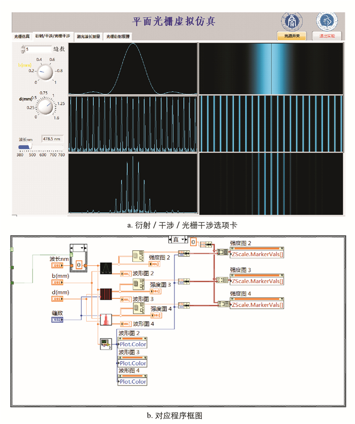 衍射/干涉/光栅干涉仿真实验前面板及对应程序框图