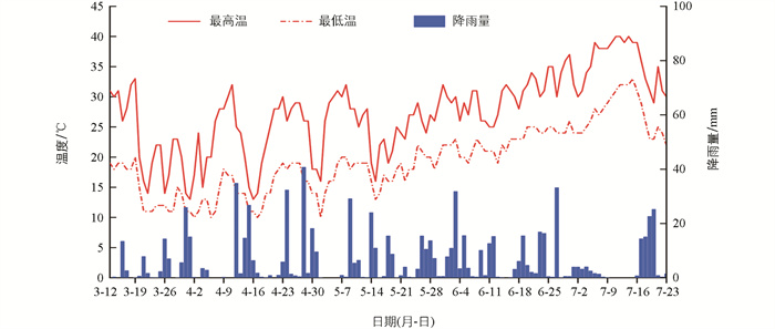 试验地3-7月气温及降雨量