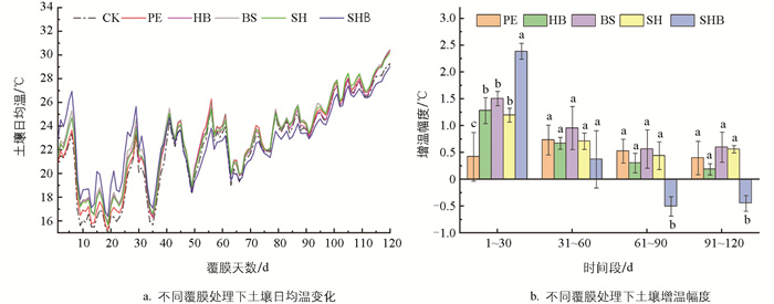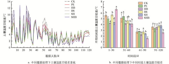 不同地膜覆盖下土壤温度日较差及其变化