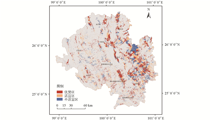 图 6 大理州红花大金元烟叶种植适宜性分布
