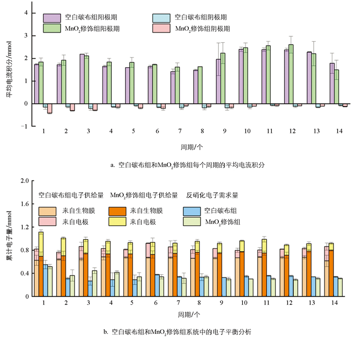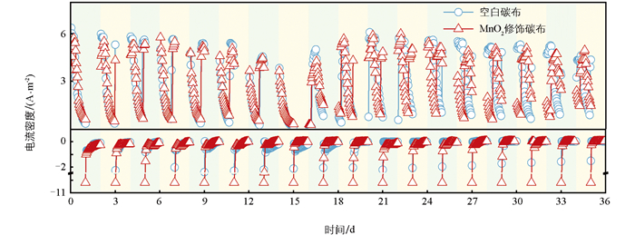 图 1 MnO2修饰组与空白组各运行周期阴阳极状态电流输出情况