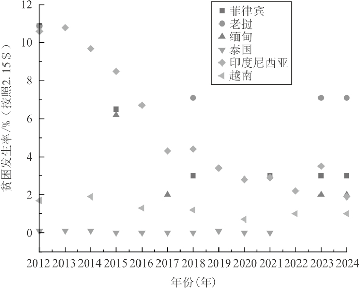 东盟国家作为“丝绸之路经济带”与“21世纪海上丝绸之路”重要的交会地区,涵盖中国—中南半岛经济走廊及孟中印缅经济走廊部分,对高质量共建具有重要的支撑作用。因此,完善机制是促进“共建”走深走实、推进人类命运共同体建设的关键。然而,东盟国家发展差异显著,多数面临贫困挑战,区域减贫进展缓慢,内部发展不平衡[4]。这极大地削弱了其参与高质量共建的动力。