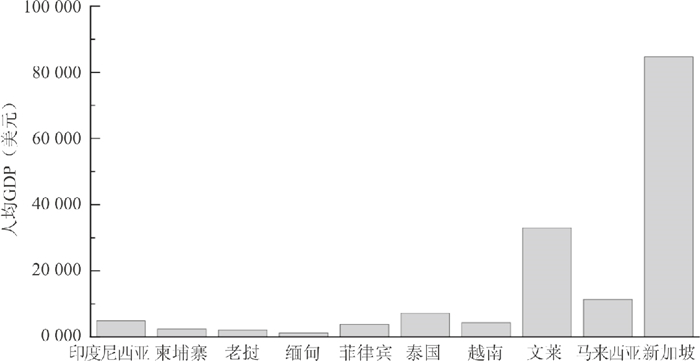 上述困境产生的主要原因在于东盟国家间经济发展阶段不同、市场发育程度存在差异。从2023年人均GDP数据来看,东盟国家之间收入水平差距显著,新加坡人均GDP高达84 000美元,缅甸仅1 233美元,差距超60倍(见图 9)。由于处于不同经济发展阶段,发达成员国以服务业和高端制造业为主,注重科技创新与产业升级;欠发达成员国农业占比大,基础设施薄弱,亟需解决基础产业和基建问题。同时,发达成员国市场机制完善,欠发达成员国市场发育程度低,市场体系不健全。这种差异导致各国接受外部投资能力及技术转移能力不同,减贫合作重点各异,影响减贫合作深入推进。