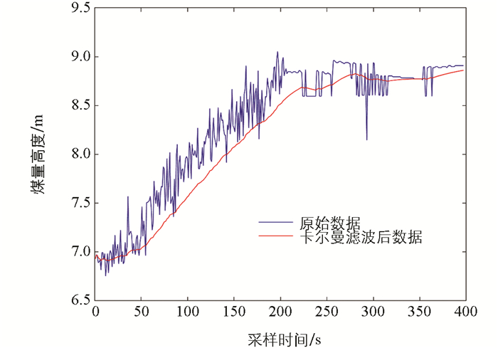 毫米波物位计用于煤料仓中煤量数据的采集,如图 1所示。首先以1 Hz的采样频率采集原始数据,原始数据中可能包含噪声和异常值,因此需要进行初步的数据预处理,包括去除明显的噪声和异常值,以及对数据进行平滑处理。预处理后的数据更加稳定,为后续滤波器的应用做好准备。