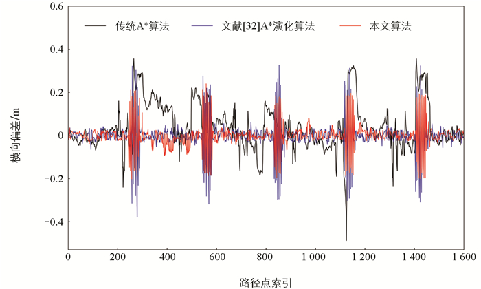由图 9和表 3中各算法路径跟踪的横向偏差对比分析可知,本文算法在最大横向偏差、平均横向偏差和标准差3个指标上均优于其他算法,表明本文算法所规划路径更为连续平滑,机器人在行驶过程中更加平稳,路径跟踪效果最佳。综合来看,本文算法能够有效满足机器人在果园场景中的作业需求。