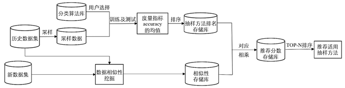 通过前面的算法1和算法2可以得到抽样方法排名存储库和相似性存储库,利用这些信息就可以为用户的新数据集推荐适用的抽样方法,具体的过程见算法3.