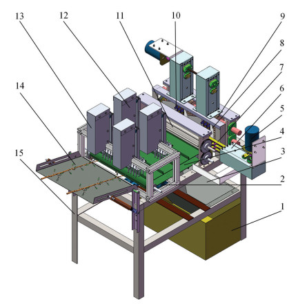 目前,研究者针对花椒采摘机的设计及其工作性能开展了大量研究工作。花椒采摘机主要有3类,分别为:基于“下桩”采摘技术的采摘机、半自动手持式采摘机和基于图像识别的机器人采摘机。相关研究表明,不直接树上采摘,而是改为剪下枝条(“下桩”)再摘选花椒果的采摘技术,改善了采用传统人工树上直采技术的花椒生长与管理模式,使花椒产量显著提高[1]。杨玲等[5]研制的旋转剪切式青花椒采摘装置,通过旋转花椒枝导向喂入往复式切割器,初步解决了花椒枝难以喂入、刀口堵塞的问题,但该装置在枝条夹持时需要停机喂入花椒枝; 方雪峰等[6]研制的鲜花椒枝果分离机,通过有齿环刀旋转切割使花椒枝果分离,同时浮动夹持输运部件拖曳花椒枝; 李瑞[7]结合“下桩”采摘技术设计的青花椒采摘机,通过试验验证了花椒机械化采摘的可行性,但该机存在花椒枝难以喂入、刀口堵塞等问题; 李秋生等[8]研制的干后青花椒脱粒装置,通过对“下桩”后烘干的带果花椒枝高速冲击,同时齿杆翻搅花椒枝,使花椒果从花椒枝上脱落,该装置结构简单、紧凑,且喂料、脱粒、收集一体化作业,但该装置仅适用于烘干后的花椒枝; 宋树民等[9]研制的花椒采收碎枝一体机,通过对关键部件设计并进行试验,验证了花椒采收、碎枝一体化作业的可行性。上述机型均采用“下桩”采摘技术实现花椒枝果分离,但存在花椒枝喂入困难、易堵塞的问题,停机人工喂入花椒枝的设计也使采摘效率降低。随着乡村振兴战略的实施,全国各地花椒种植面积和产量逐年上升[3],如何实现高效低损采摘成为当前研究重点。万芳新等[10]研制的梳齿-气吸式花椒采摘机,通过对采摘流场分析及气吸式采摘装置的设计,实现了花椒低损采摘; 黄华等[11]设计了一种基于改进YOLOv5的花椒簇识别系统,实现了在复杂环境下对连株花椒的分离识别; He等[12]设计了一种用于自动采摘的HSV(Hue,Saturation,Value)颜色空间自适应阈值花椒果检测系统,在召回率、准确率和误报率方面均有较大提升; Guo等[13]提出了一种基于YOLOv5的花椒检测网络,解决因形状不规则和遮挡导致花椒检测准确性低的问题; Lu等[14]通过对比传统分割与深度学习方法,提出了适用于青花椒采摘的图像分割方法。然而,现有花椒采摘机在整机尺寸、制造成本、采摘效率和应用成熟度等方面均有较大改进空间。