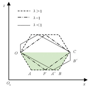 当λ>1时,拨齿区保持为等腰梯形,但水平方向上点A到点B的长度随λ的变化而变化。水平长度影响拨齿的运动轨迹,并进一步影响输运效果和拨齿区的面积。根据花椒枝形态特征,其侧枝多且围绕主枝生长发散[22],在拨齿上升过程中被压平的侧枝逐渐恢复,直到拨齿运动至点C才收齿。此时,拨齿不易将已喂入往复式切割器的花椒枝拖出。
