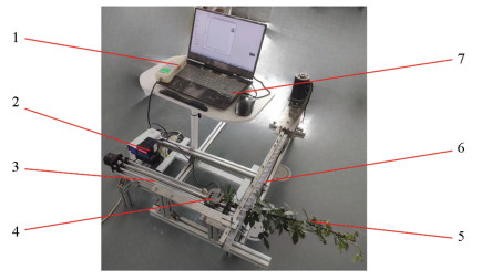 将花椒枝置于往复式切割器之间,拉力传感器通过夹具与花椒枝一端相连,通过步进电机控制器调节丝杠转速。剪切力通过PST-50 kg拉力传感器采集,采样频率为0.2 s,测试平台如图 8所示。
