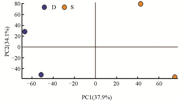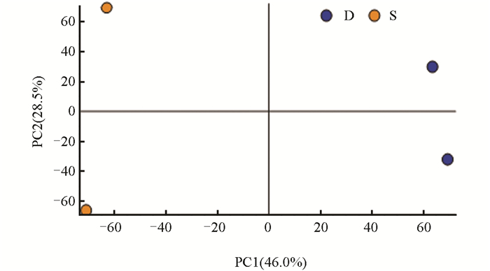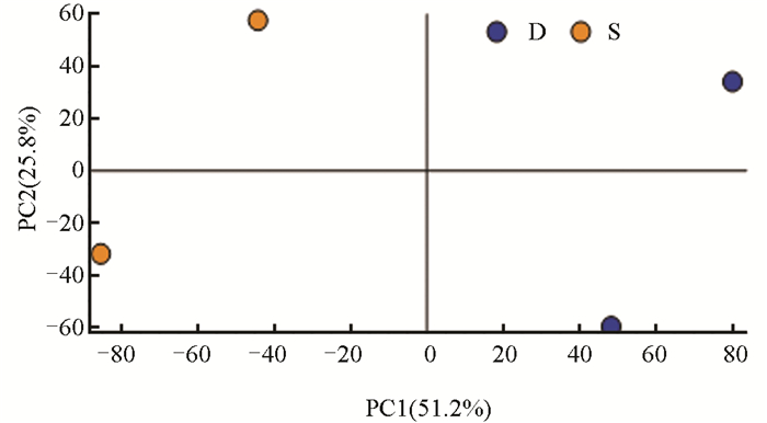分别对样品实验组(S)和对照组(D)0 d、6 d、12 d(图 3图 4图 5)中的测序数据进行主成分(PCA)分析,以阐明本研究所使用的测序数据质量合格。